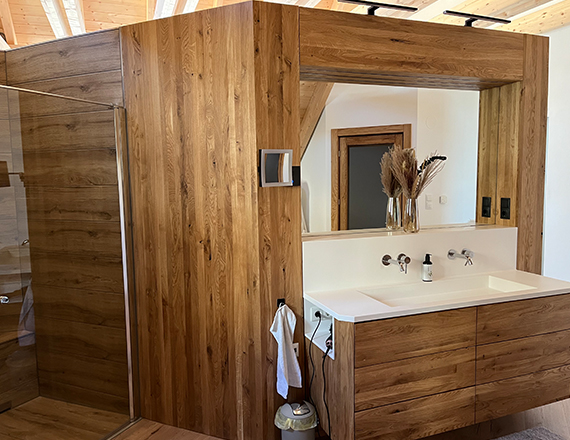 Wir widmen uns mit Leidenschaft der Gestaltung und Herstellung maßgeschneiderter Badezimmereinrichtungen. Als erfahrener Tischlermeister mit einem Gespür für exzellente Handwerkskunst und ästhetisches Design verstehe ich die Bedeutung eines gut gestalteten Badezimmers als Ort der Entspannung und Erholung.
